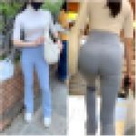 レギンスで浮き彫りにされた美尻がクローズアップ。