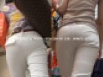 フィット感抜群のストレートパンツから巨大に膨らむぶりケツが顔を出す。