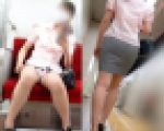 この動画は電車対面パンチラの三角ゾーン観察記録です。白ブラウスにタイトスカートが短いお姉さんが登場します。