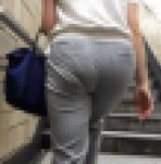 アラサーOLのグレースラックスパンツ。ピッチリと下半身に張り付き、ムチッとしたヒップラインを映し出す。なかなかの薄さの生地で、丸見えになるV字のパンティーライン。長めの階段シーンでじっくりと楽しめます …