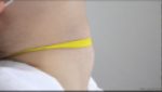 タイトル / 液体飛ばしフェチ 容器からクリームなどを吐き出すフィットネスウェアの女の人f240