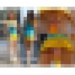 【ミニオ○ズみたいな服のお姉さんを逆さ撮りしたらお尻丸出しTバックだったwww!!】