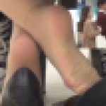 つま先, パンスト, パンスト・リグレット, パンプス, 脚フェチ, 足の裏, 足フェチ, 靴脱ぎあるターミナルビルのレストラン内でのパンプス脱ぎ3シーンです。 いずれもハイヒールやフラットパンプスを椅子の下で踵や足の裏を出して脱いでいます。 1人は顔のぼかし、2人は後ろ姿です。音声はカットしてい …