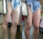 短すぎー!ちょっとかがめばすぐ見えちゃうエロ脚ミニスカ