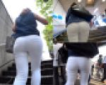 お手本のようなエロウォークのエロカワ美脚ギャル:パツピタの白スキニーがやたらと映える絶品ターゲット